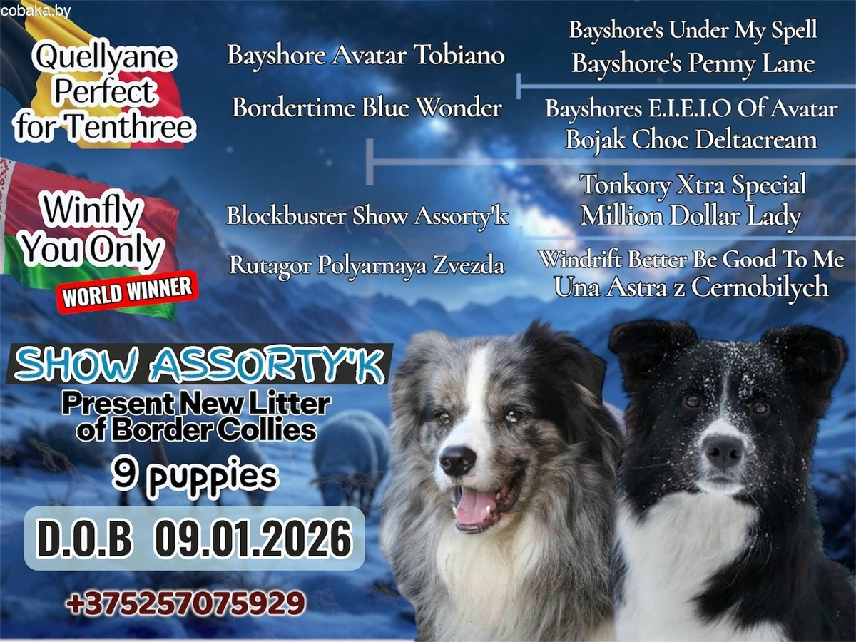 Питомник Шоу Ассортик предлагает шикарных щенков бордер колли!