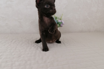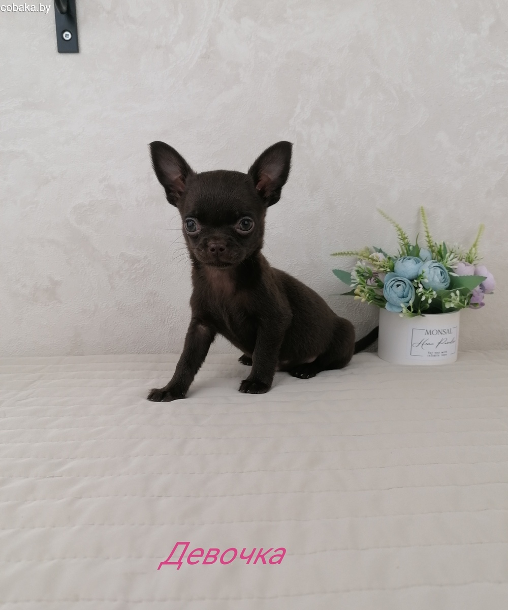 Шоколадная девочка Чихуахуа, 2 мес, короткошерсная, прививки и вет паспорт имеется. Полностью самостоятельная, готова переехать в новый дом. Ходит на пеленочку и лоток. 950 р. Подробнее по тел или месенджеру. Возможна доставка.