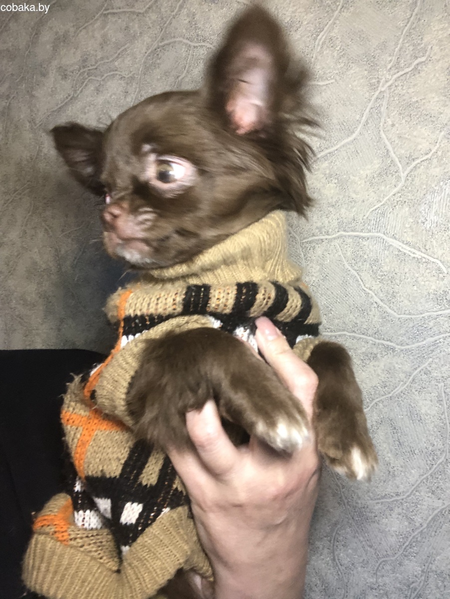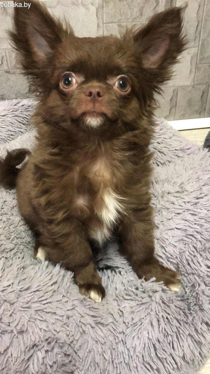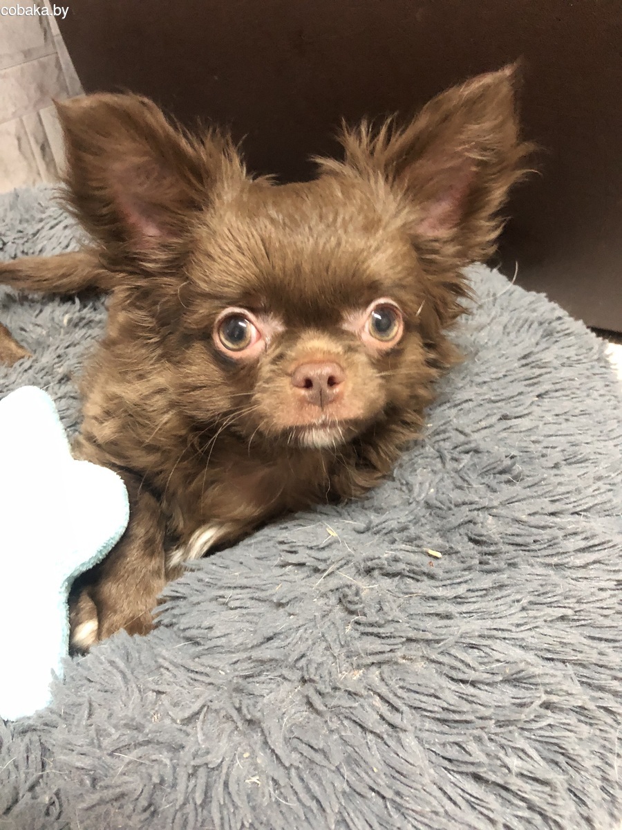 Чихуахуа щенок, мальчик, дл/ш, 3,5 месяцев, шоколадно-белого окраса, нежный шикарный малыш, проглистован, привит , готов к переезду, с родословной , очень красивый , от породных родителей, социализирован, видео в личные сообщения, (есть еще свободные щенки) , мама и папа живут вместе, доставка по Беларуси