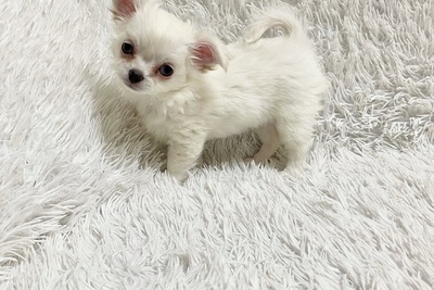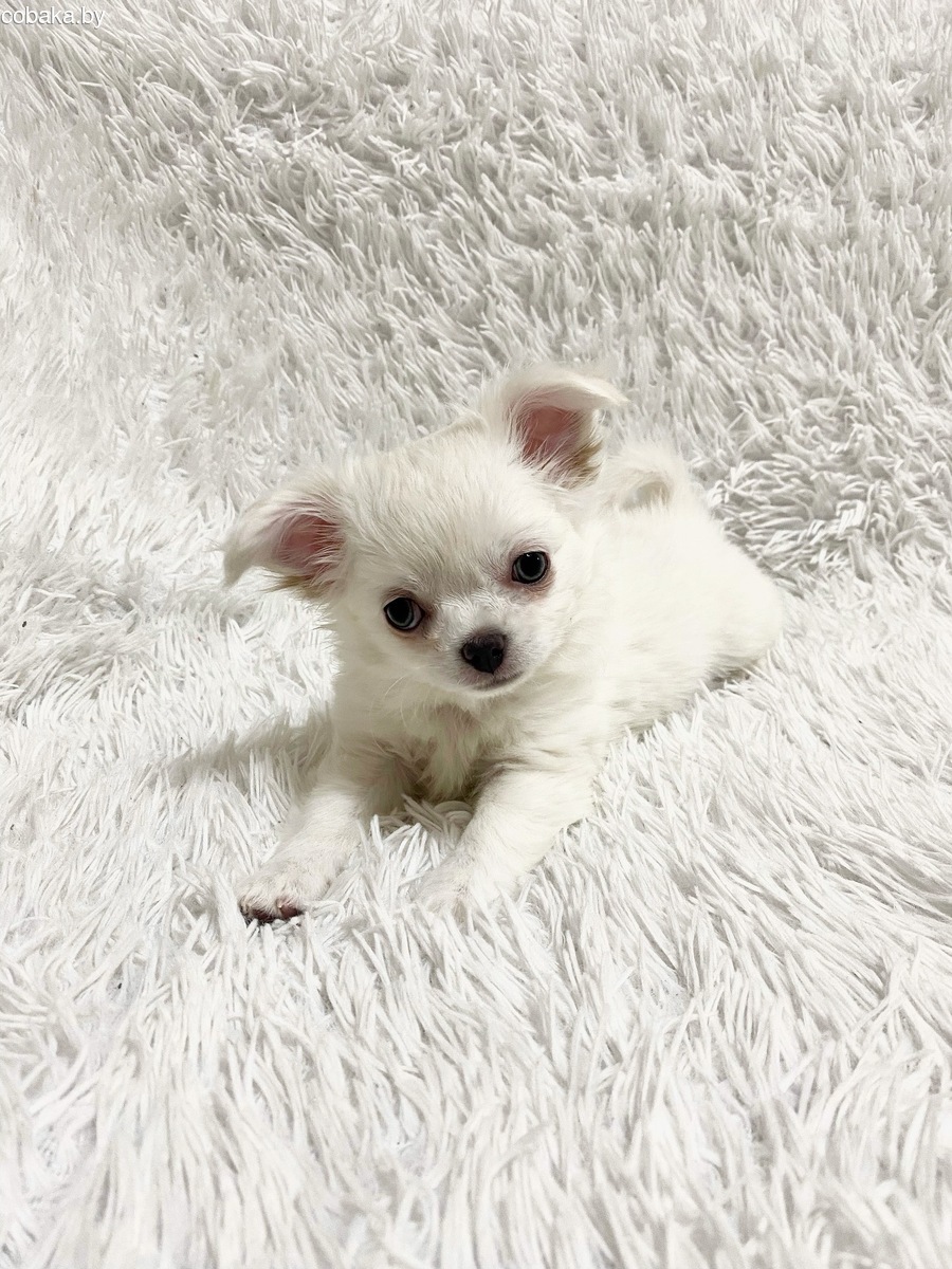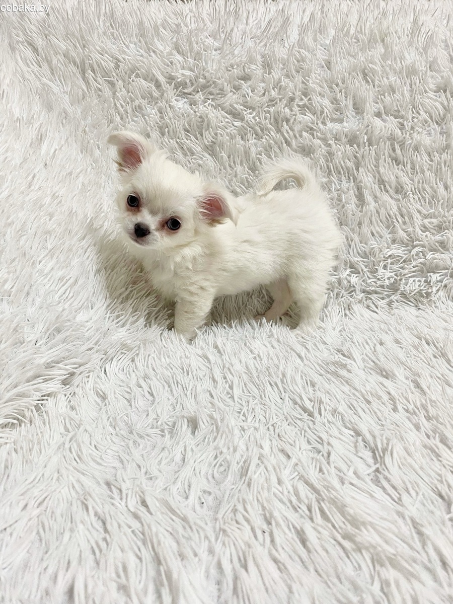 Премиальная длинношерстная белоснежная девочка чихуахуа от официального питомника «Блестящая мечта».