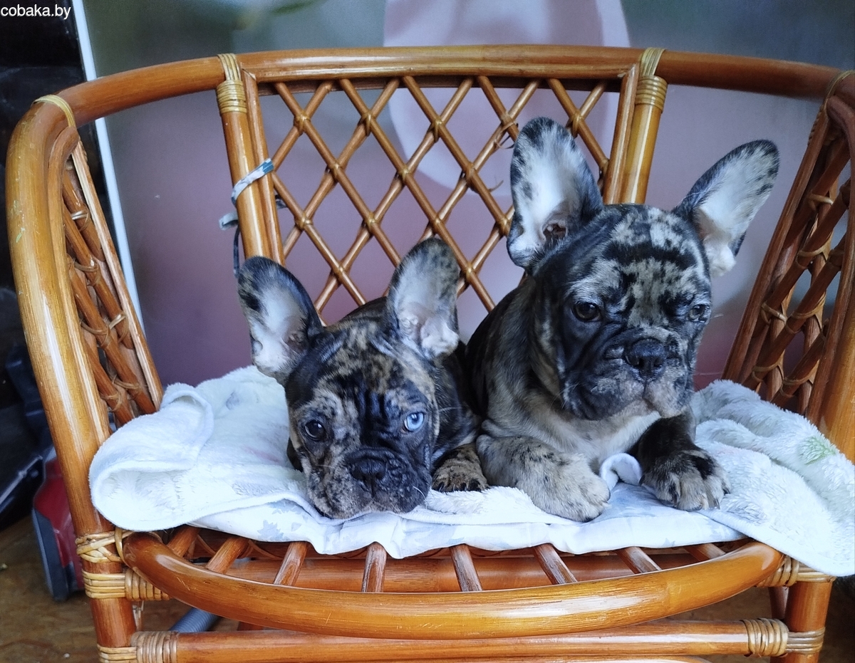 Красивые, цветные малыши французский бульдог в идеальном окрасе мерле , черный мрамор ищут любящие ручки, от породистых родителей. Вакцинированы, осмотрены, родители с родословной. Папа чемпион Белоруссии.