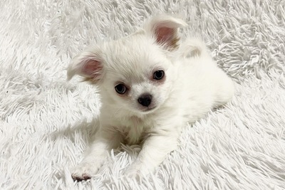 Премиальная длинношерстная белоснежная девочка чихуахуа от официального питомника «Блестящая мечта».