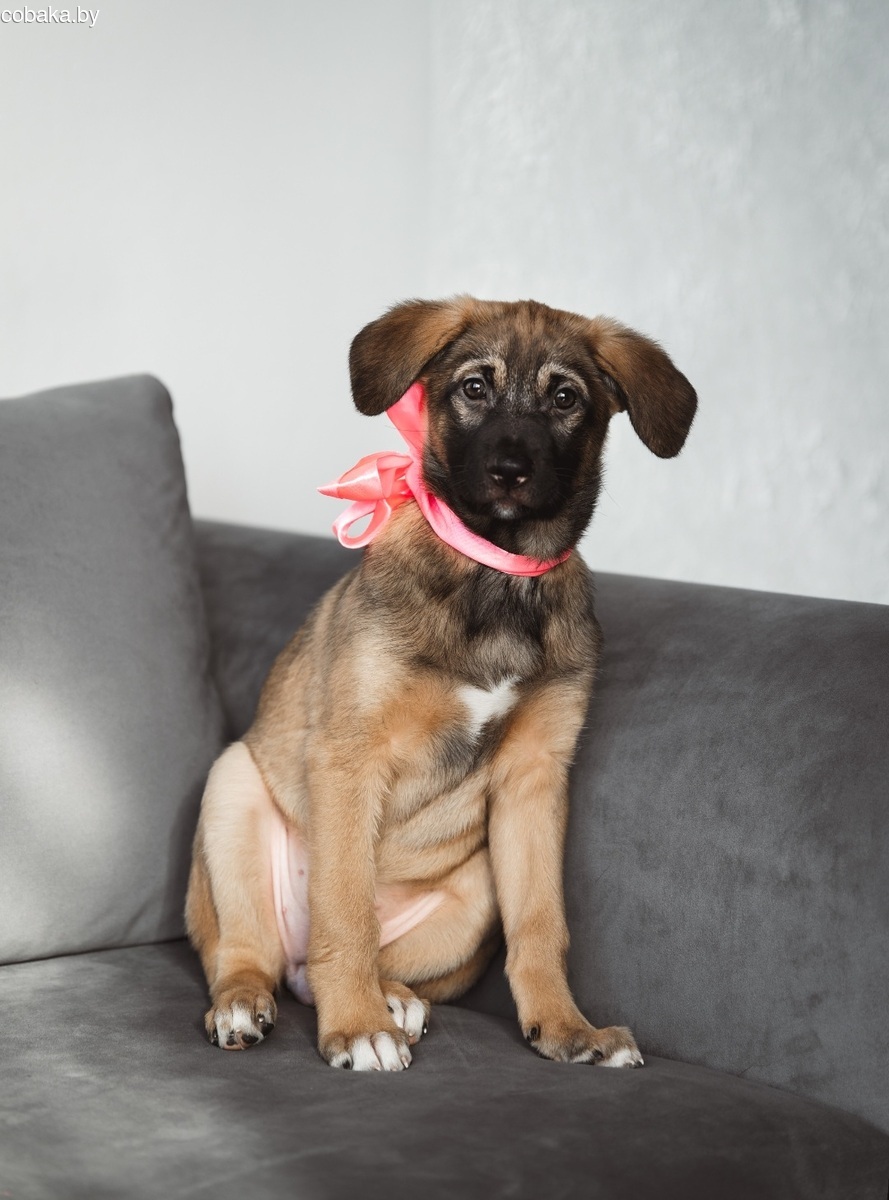 кушает консервы и сухой корм для щенков. Малышка обработана, привита, есть чип, дома ходит на пеленку, приучается ходить на поводке.Самая спокойная из помета. Будет небольшого размера не выше колена. В новый дом привозим. Приезжайте знакомиться.