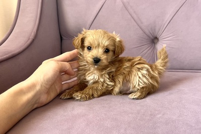 Питомник “Happy-Peppy” предлагает к продаже щенков мальтипуF1. Мальчик МИНИ мальтипу 2,5 месяца, ожидаемый вес взрослой собаки 2,5 - 3 кг. Ярко кремовый окрас, аккуратная круглая морда, густая шерсть, щенок без дефектов: правильный привкус, ровная линия верха, короткие лапы. Все щенки привиты и проглистованы по возрасту, социализированы и ходят на пеленку. Кушают корм премиум класса. Полная консультация по уходу, возможна доставка по РБ.