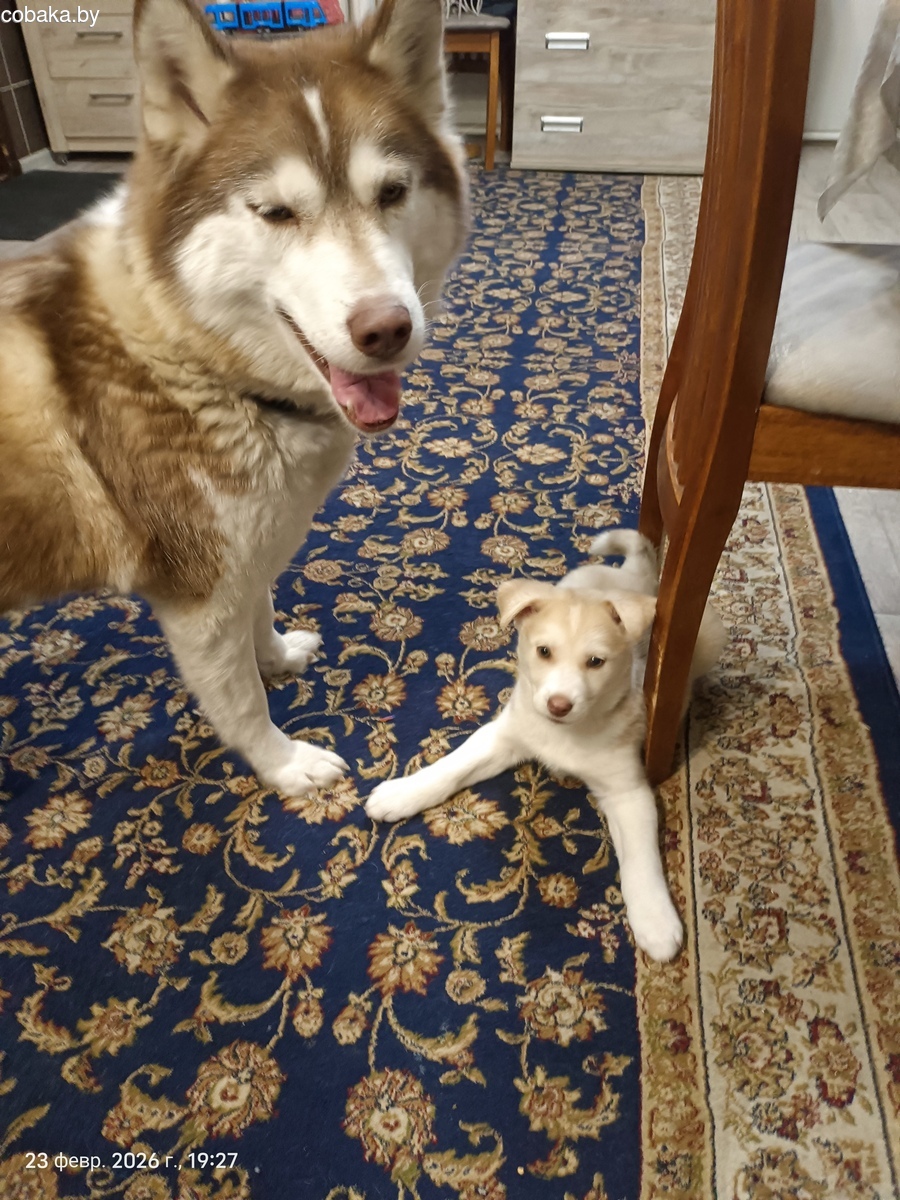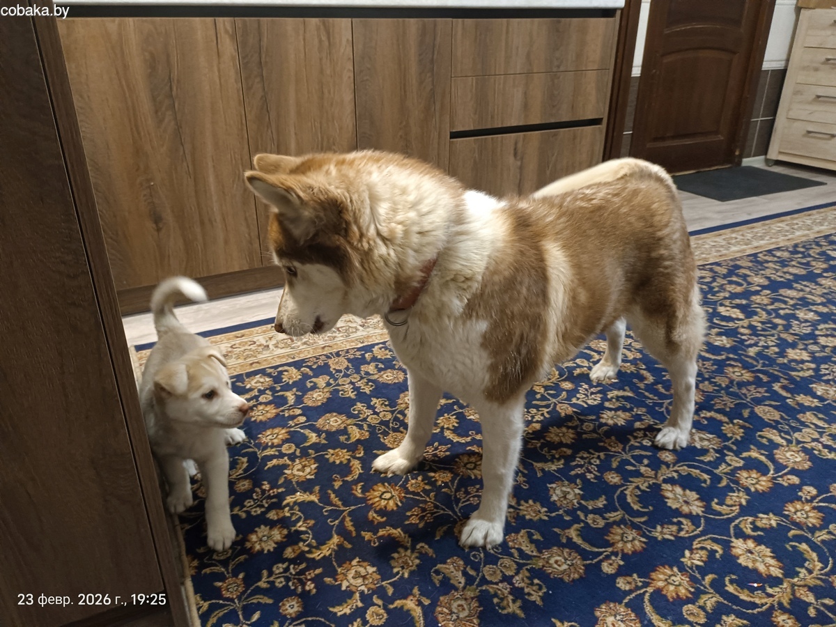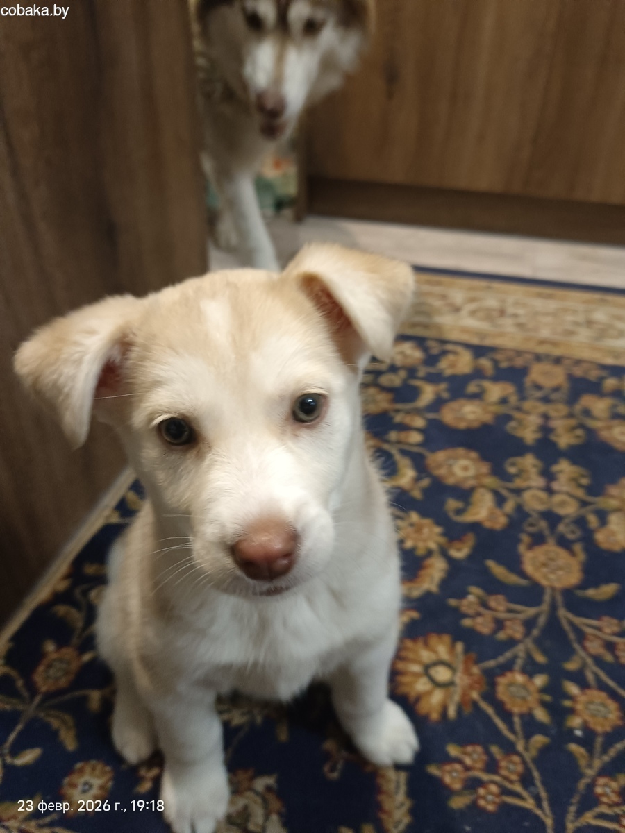 Метис хасти. Девочка. Родилась 04.01.2026. В помете 3 щенка. Мама -чистокрлвная хаски, папа - метис, похож на помесь гончей и востчно европейской овчарки. Отдаю в хорошие руки. Район Сельмаш, Гомель. + 375 447835150
