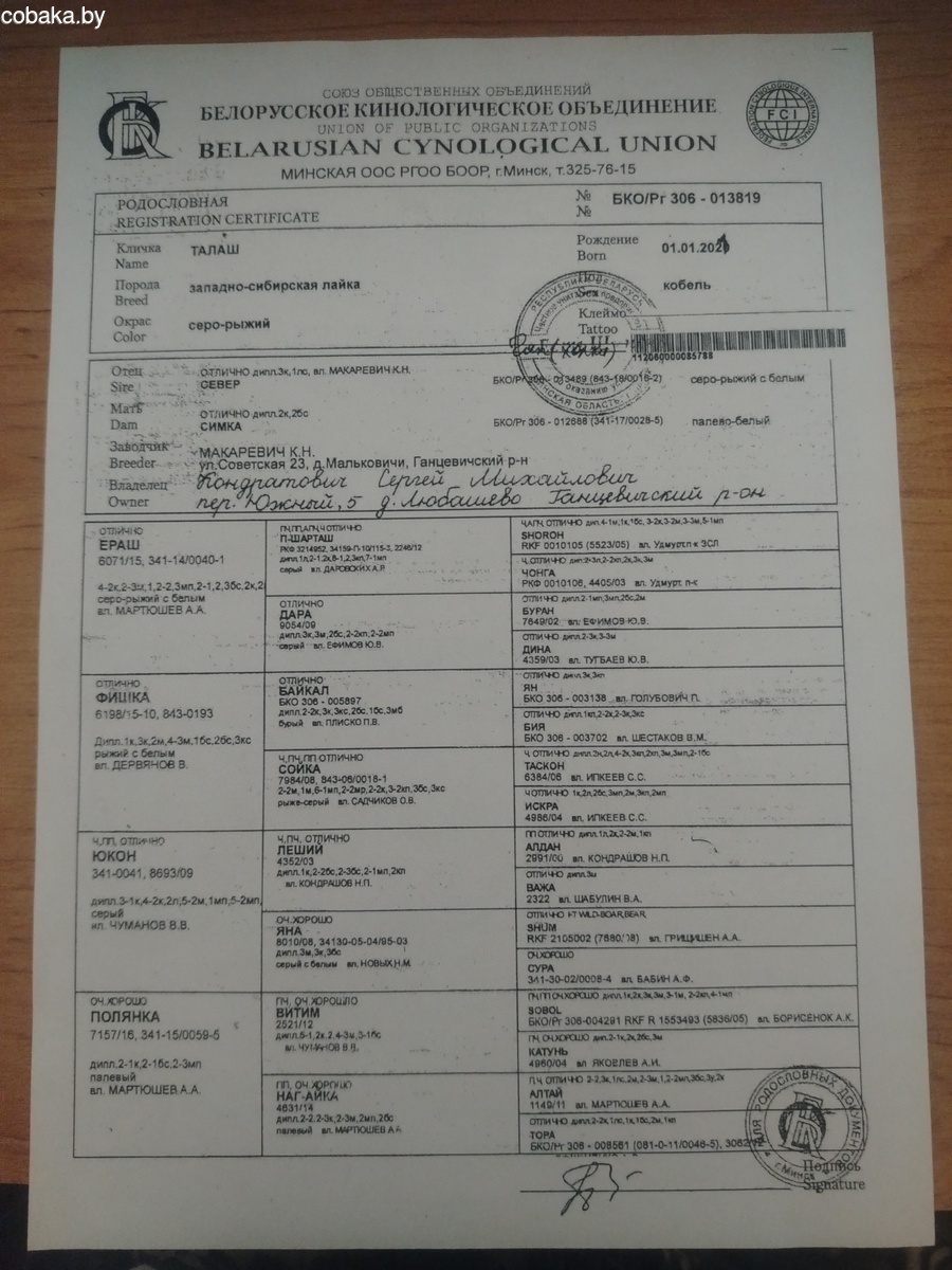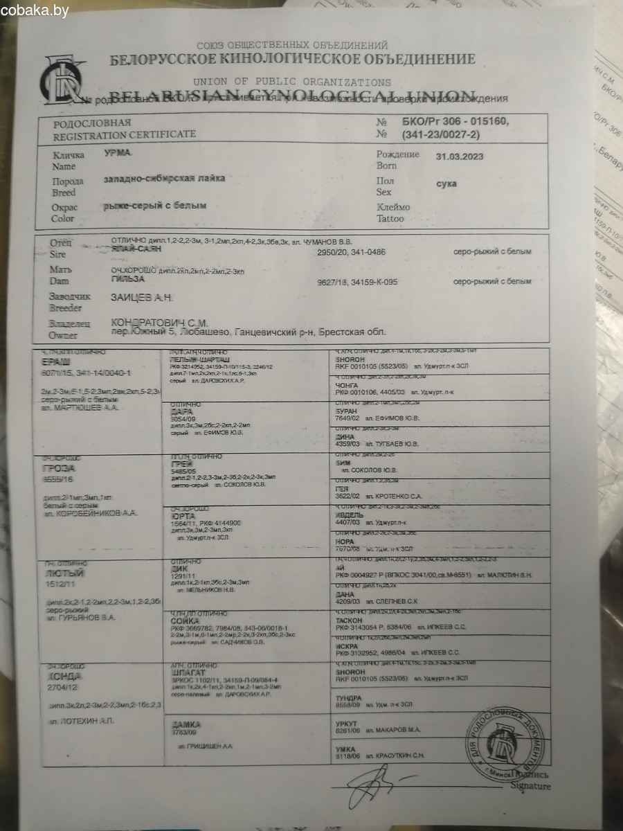Оба родителя удмуртских кровей, по линии Ч. ПЧ Ераша, Ч. АПЧ Шороха. Более подробная информация по тел.