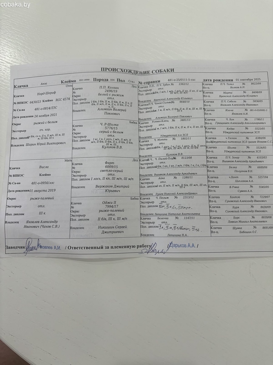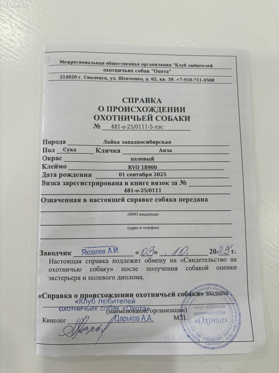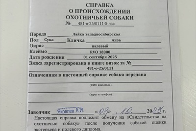 Продаётся западносибирская лайка 6 месяцев от рабочих родителей