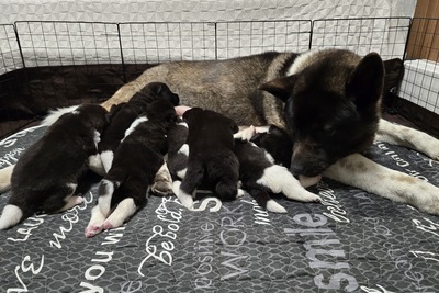Красивые крупные щенки от чистокровных родителей доступны к бронированию.Есть мальчики и девочки.Окрас черно-белый.