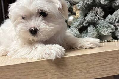 Щенки мальтийской болонки ждут своих родителей.