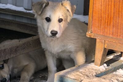 Мальчик и девочка в холод выживают на улице в мороз!На промзоне грозятся избавиться от них, они никому там не нужны! Помогите щенятам обрести дом. Без помощи им не выжить..