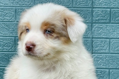 Очаровательная блондинка породы австралийская овчарка, окраса красный мрамор. Д.р. 09.05.2025