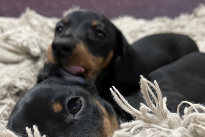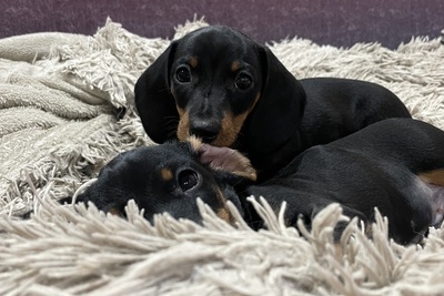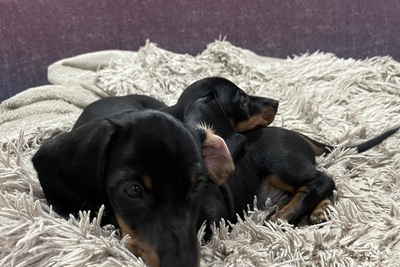 Продаются шикарные малыши кроличьей/миниатюрной таксы. 2 мальчика и одна девочка. Щенки породные и безумно красивые. Очень красивый окрас чёрный с подпалом. Малыши без брака и дефектов. С породным костяком, породная голова, длинные ушки, ровная спинка, хвост без заломов, правильный прикус, породные лапы, нет пятых пальцев и грыж. Здоровые. Обработаны от гельминтов, вакцинированы по возрасту. Щенки умные, добрые, контактные, ласковые. Содержатся в идеальных условиях. Не клеточное содержание. Ухоженные. Растут в любви и заботе. Кушают корм супер премиум класса и натуралку. Оба родителя очень красивые представители породы, психически уравновешены, добрые, очень умные собаки, нет аллергии и проблем со здоровьем.