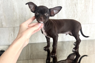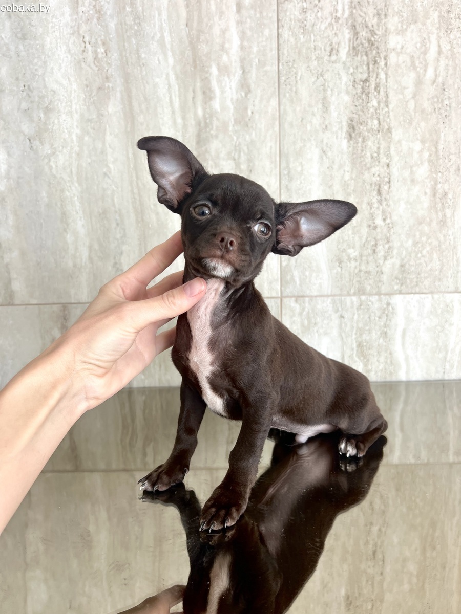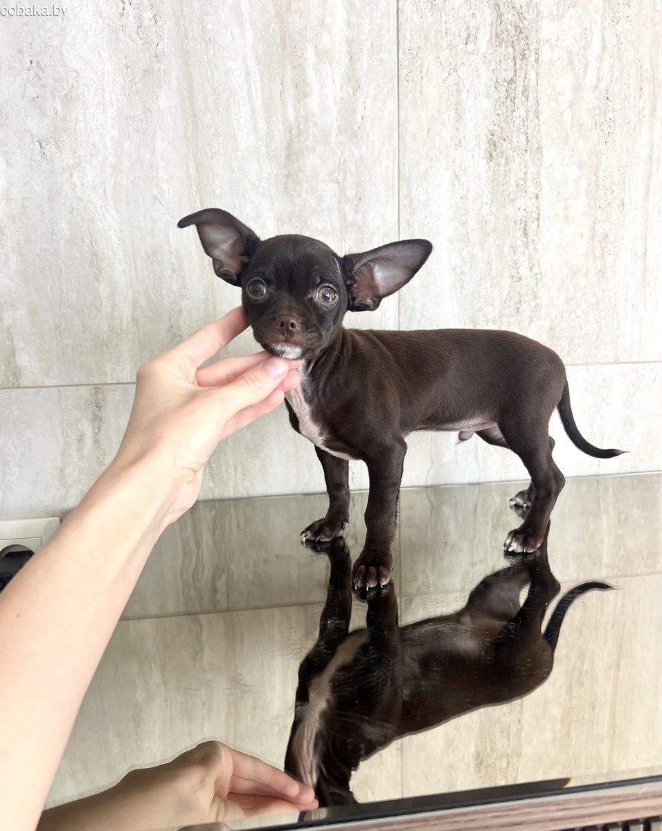 Предлагается к продаже породный мальчик чихуахуа 3 месяца редкого шоколадного окраса, тип кобби. Ожидаемый вес взрослой собаки 2-2, 5 кг. Щенок проглистован и привит по возрасту. Кушает сухой корм премиум класса, уже неплохо ходит на пеленку. Полная консультация по уходу, возможна доставка по РБ.