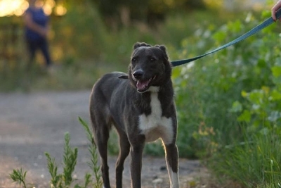 Добрейшая, красивая, спокойная девочка, около 5,5-6 лет. Немного стеснительна с новыми людьми, не сразу идет на контакт, но со "своими" людьми ласкова и игрива. Приучена к поводку, стерилизована, привита. Рост в холке - примерно 40 см, средний размер.