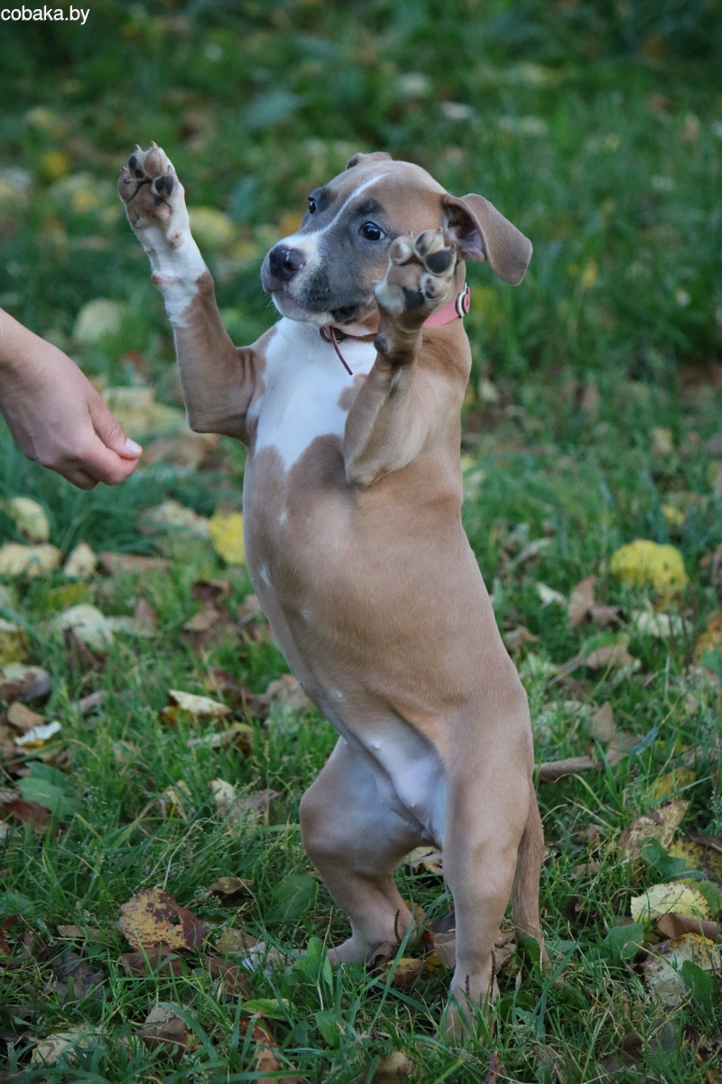 питомник Фаворит Тайм предлагает прекрасную девочку американского стаффордширского терьера! возраст 3 мес, в красивом голубо-палевом окрасе, очень клевая по характеру - веселая, ласковая, не трусливая , очень дружелюбная! будет отличным компаньоном и другом семьи!