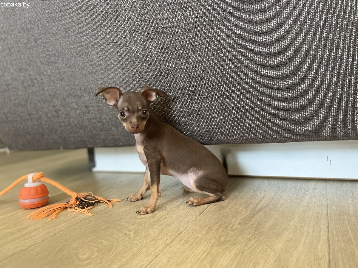Той-терьер, девочка, очень красивая, игривая, 3,5 мес, окрас: коричнево-подпалый, проглистована, привита импортной вакциной Нобивак, чипирована, международный ветеринарный паспорт. Питомник.